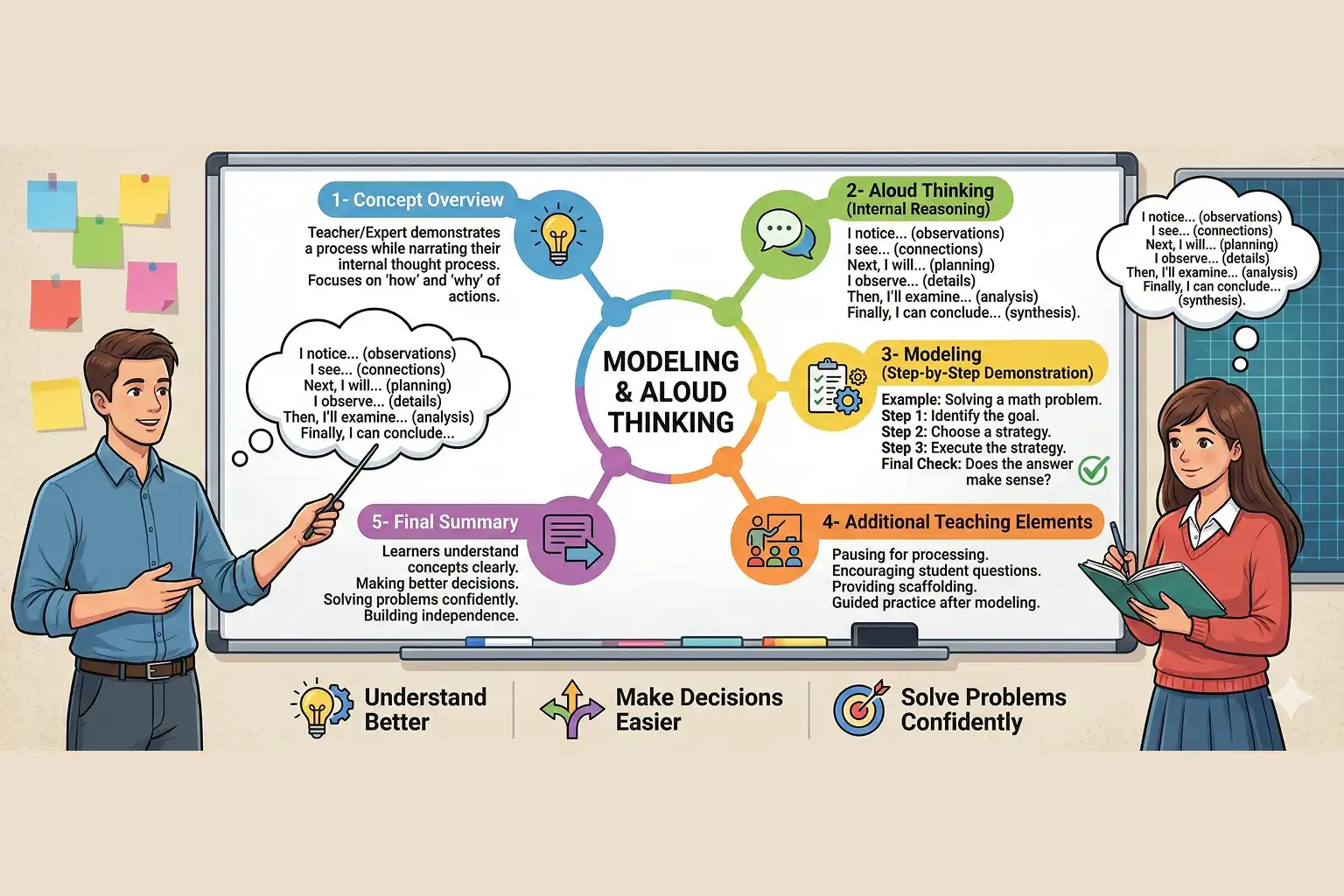 Learn smarter with modeling & think alouds, watching strategies unfold, and hearing the thought process behind each step. This method helps learners understand concepts clearly, make better decisions, and solve problems confidently.